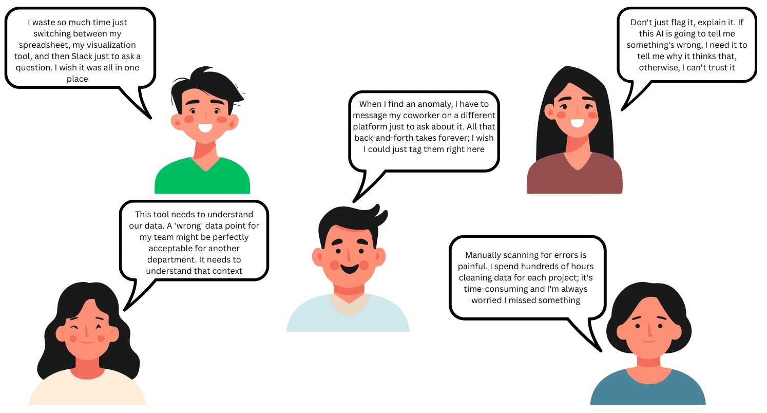 We hypothesized that manual cleaning was annoying, but users described it as a critical business bottleneck. One user reported spending over 100 hours cleaning a single project.
